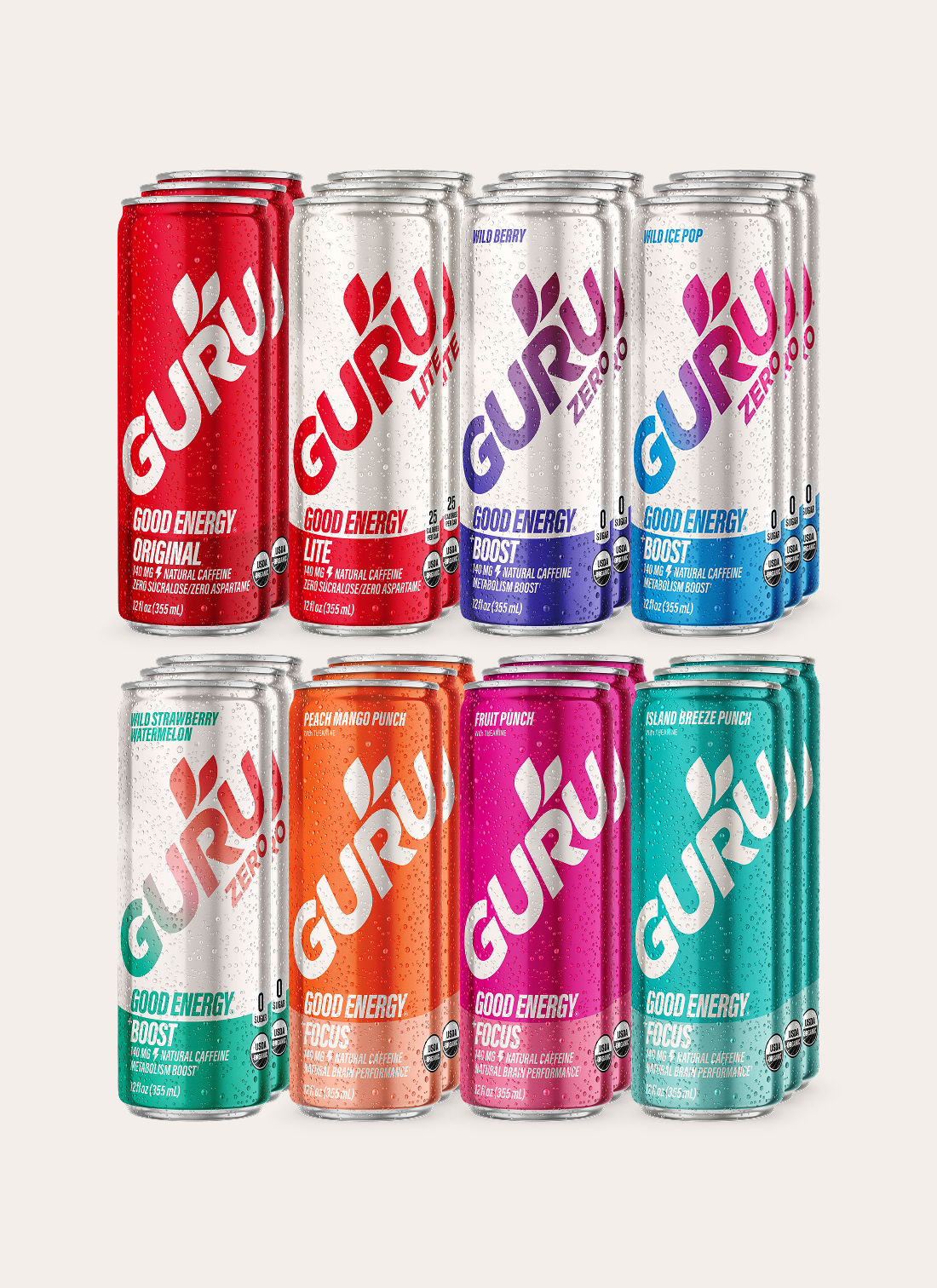 Good energy, great taste. The best-selling GURU flavors in one delicious variety pack so you can enjoy them all.