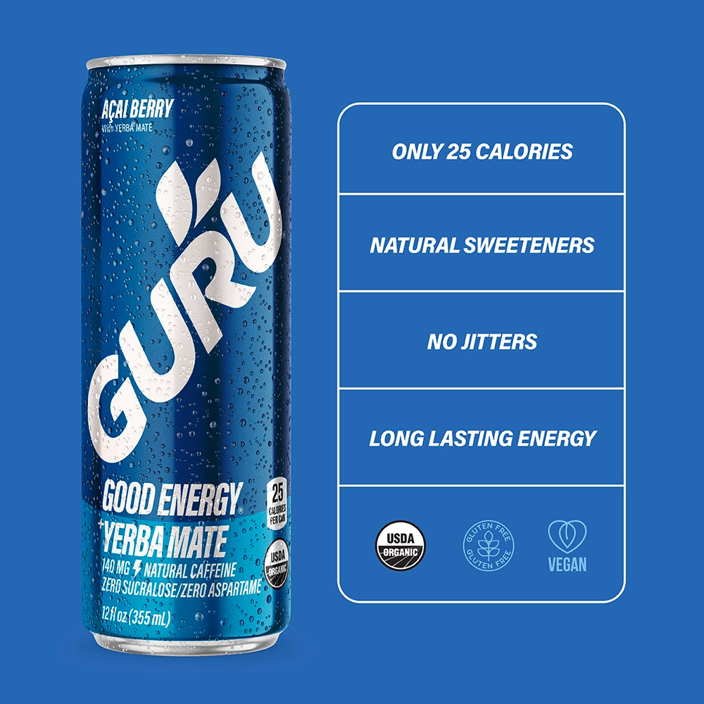 Midday crash? Meet your mate. A rich blend of açaí berries and organic yerba mate for natural energy that lasts.